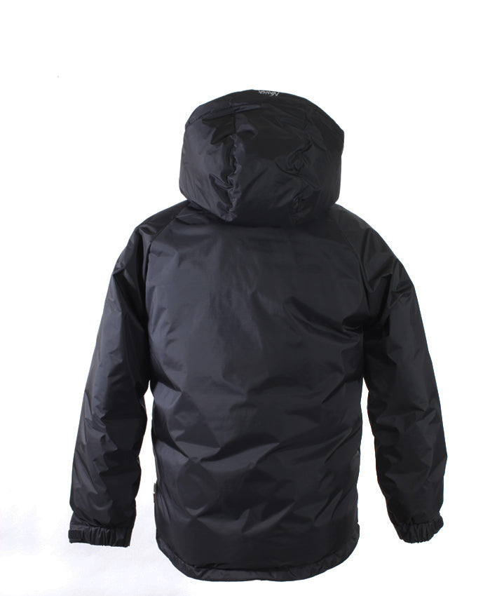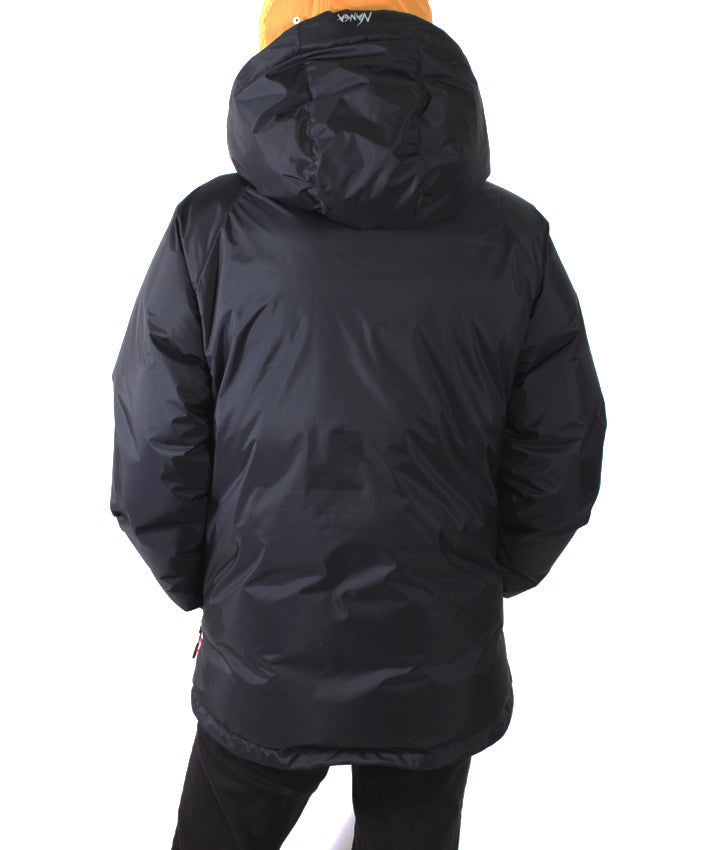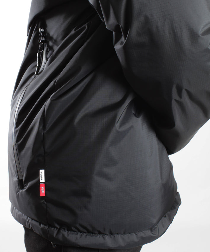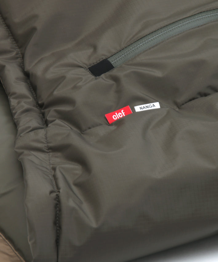 ジャケットを着た時にフードのトップにNANGAロゴがさり気なく見えるようにプリントを施し、コラボの証として大きめの織ネームをセンターに配置した別注コラボバージョン。
