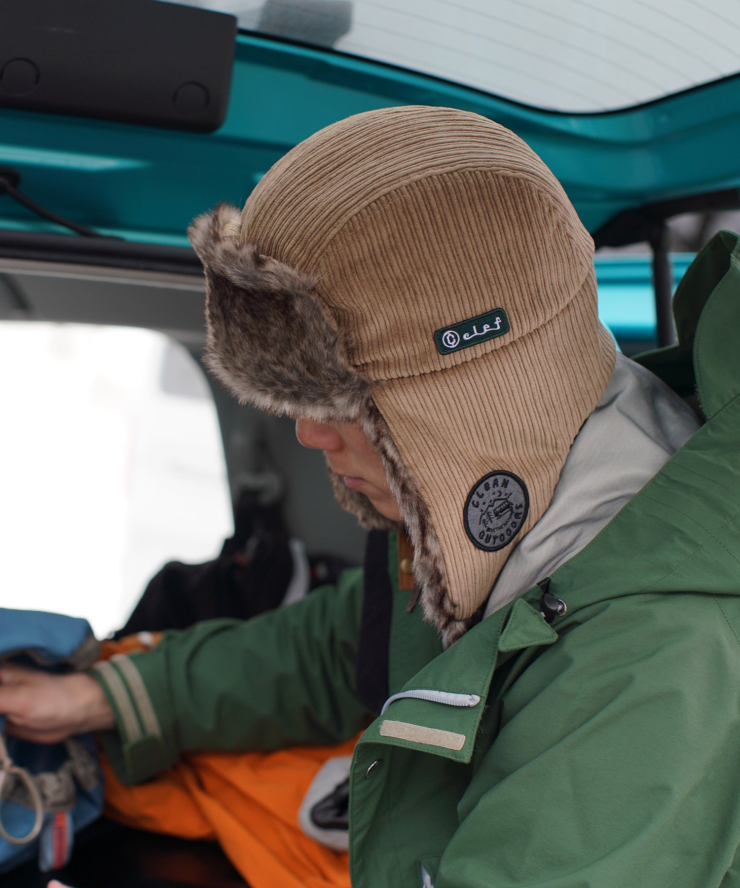 耳を下ろしてあご下でとめれば防寒性もグッド。