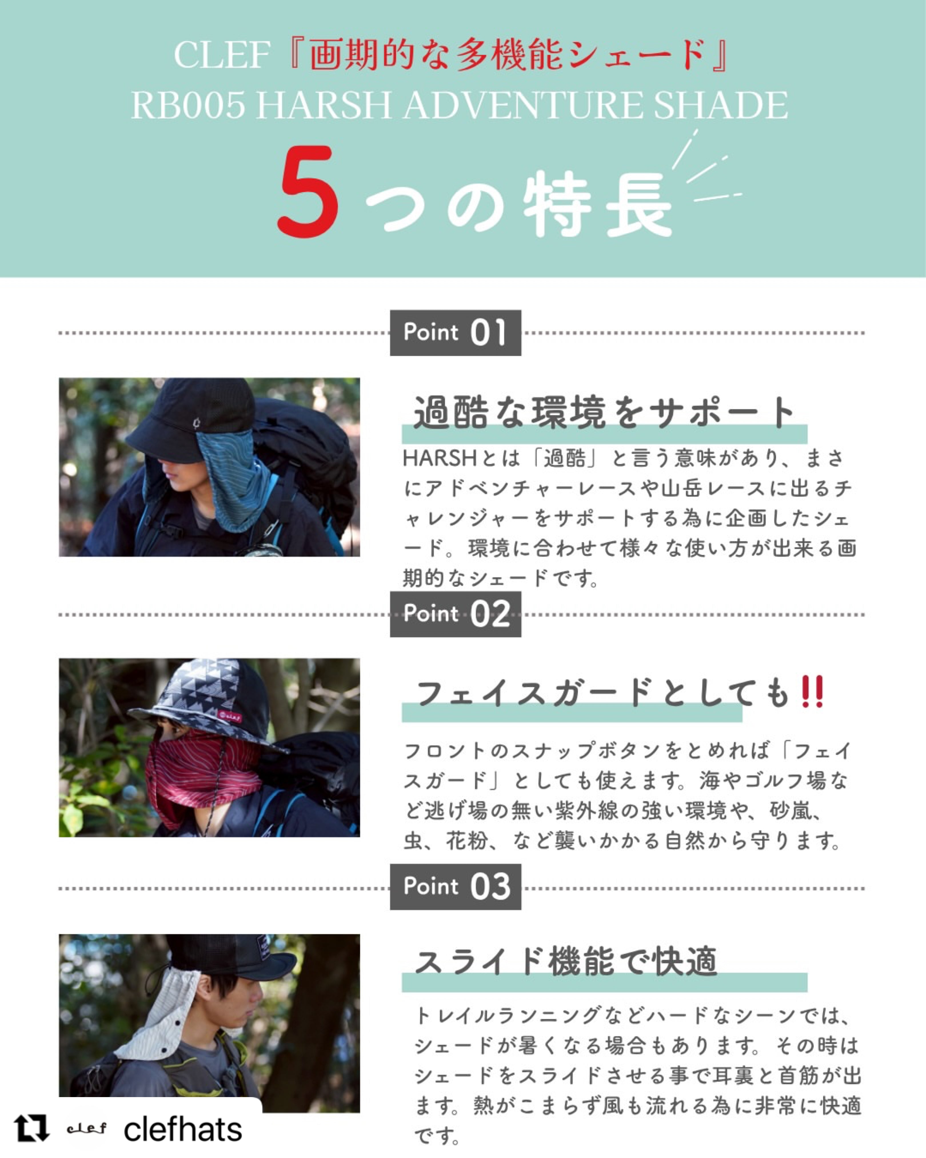 過酷な(HARSH)環境に挑む、アドベンチャーレースやトレイルランニング等に特化した2WAY仕様の『 接触冷感 & 吸水速乾 アクティブシェード 』