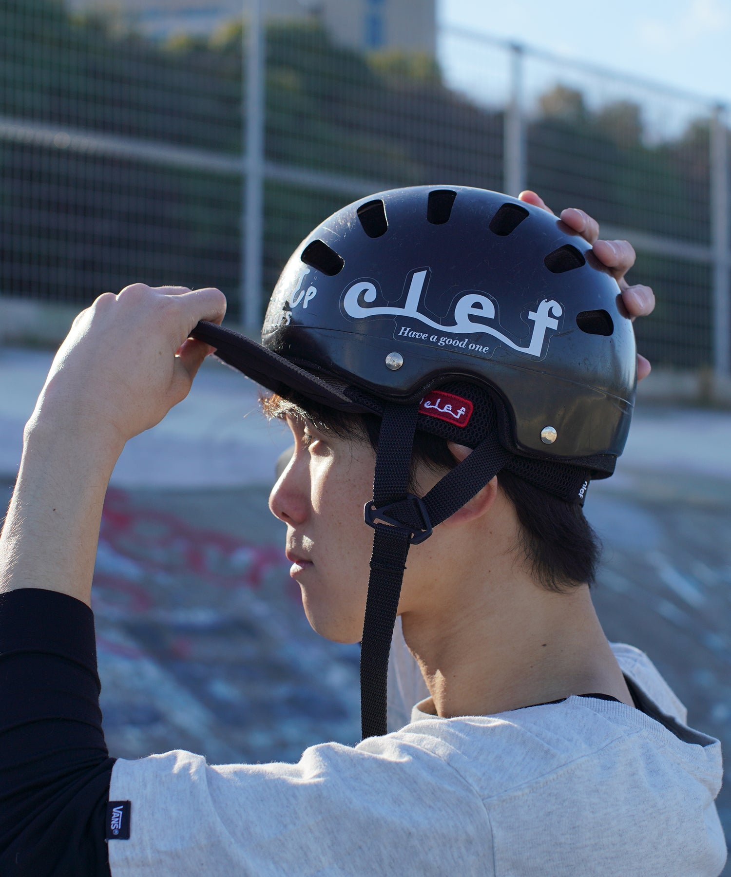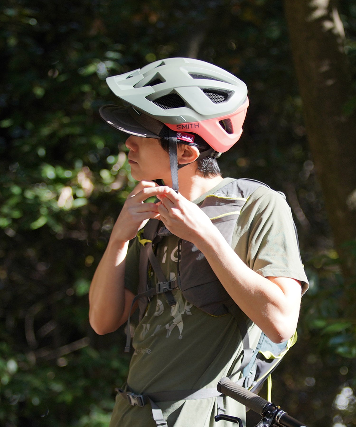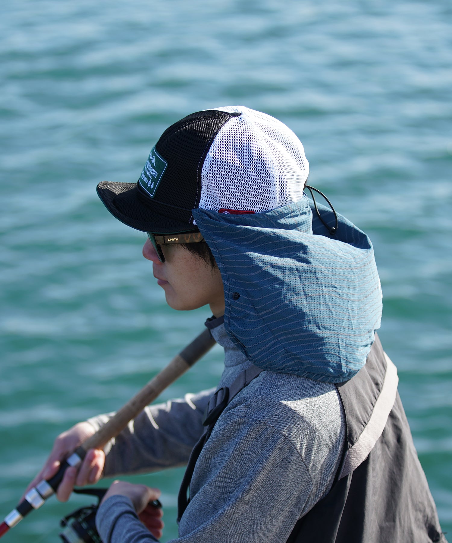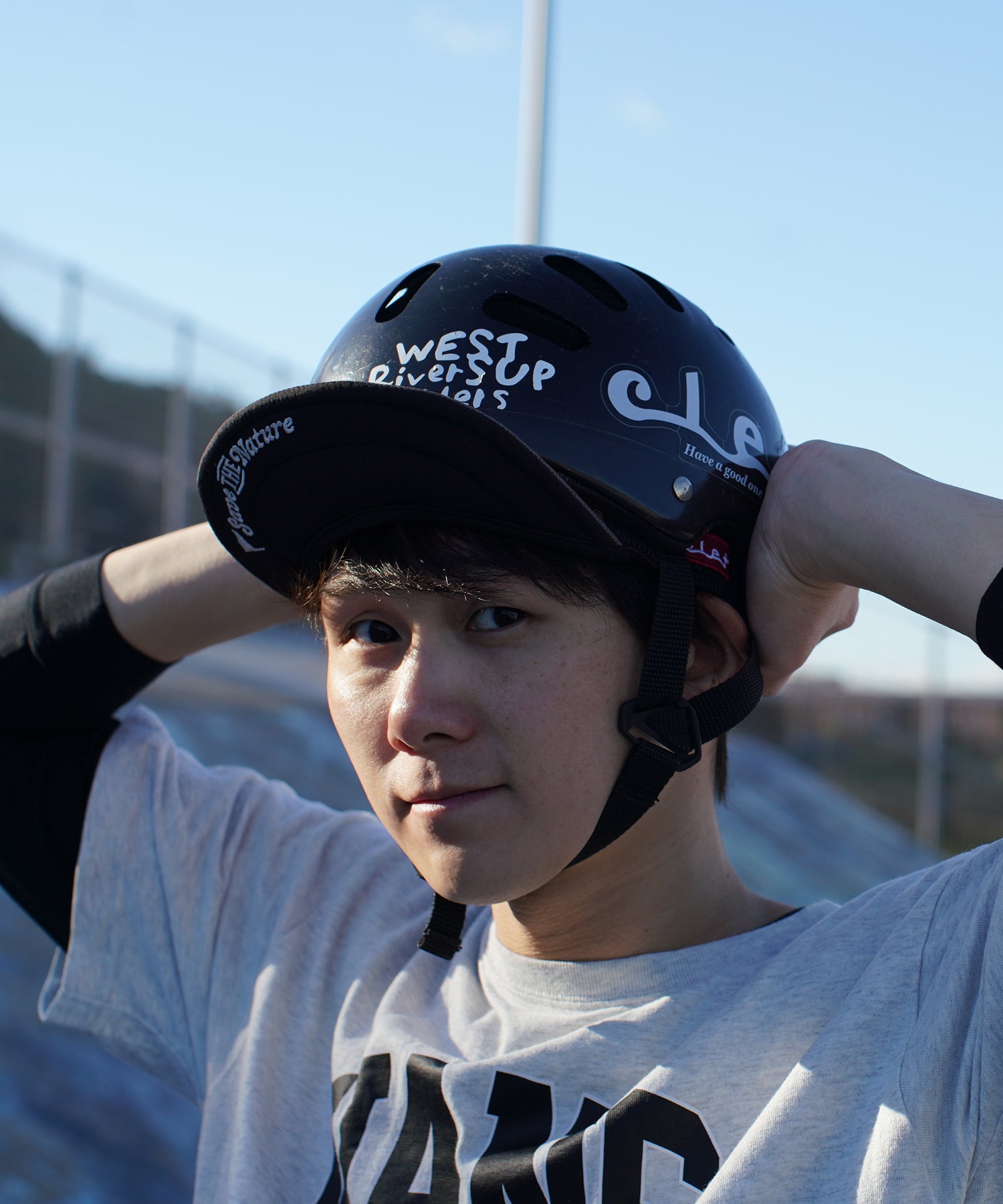 ワイヤー入りのソフトバイザーは、上げて視界を広くしたり、下げて日差しを防いだり、シーンに応じてスタイルが自由自在。